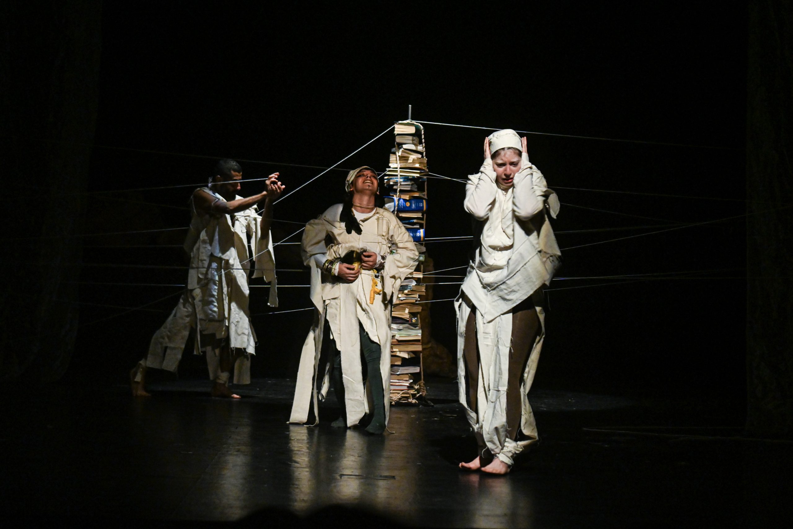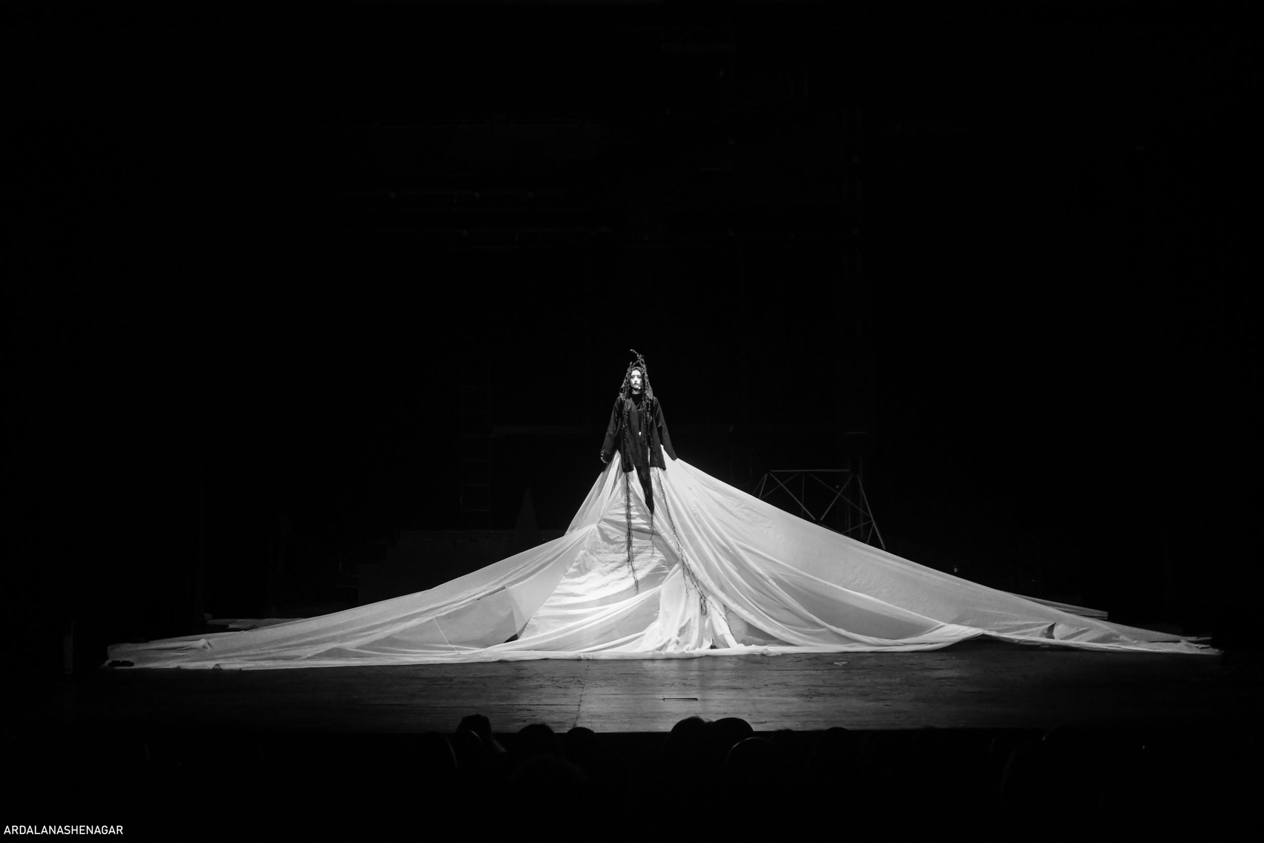 در طول زمان نمایش در میانه دیالوگگوییهای با حرارت بازیگران و نواختن در لحظه موسیقی در پشت صحنه، آنچه بیشتر شما را به همراهی ترغیب میکند؛ حتی در میانه صدای مسعود فروتن راوی، تن و حجمهای پوشیدنی صحنه است. حتی برای زوج کنار دستیام که قسمتهای زیادی از اجرا را با گوشی موبایل فیلمبرداری کردند؛ آنجایی که بازیگری در میانه نخهایی گیر افتاده و فریاد میزد، جذابیت خاصی داشت چون در همان لحظه برای احتمالا فخرفروشی فایل فیلم را برای دوستانشان فرستادند.