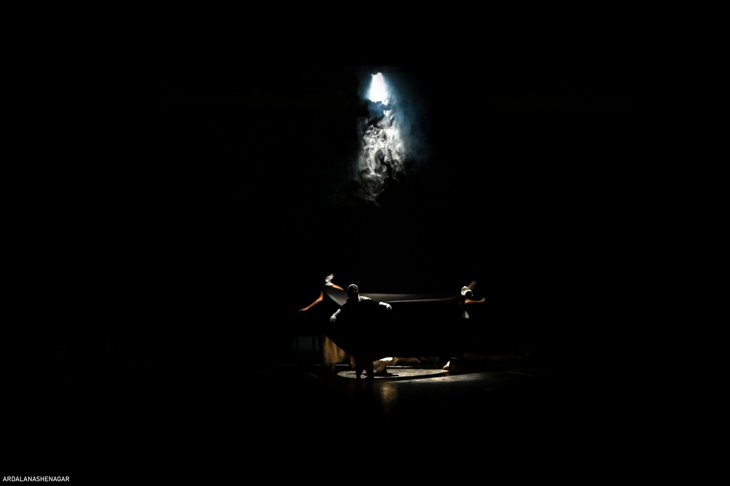 مثلثی میان ۳ بازیگر به وسیله تنپوشی مشترک شکل گرفته، که میانهاش خالی است. هر یک به سمتی حرکت میکنند و میخواهند از این تنپوش خلاص شوند ولی دیگری را به سمت مرکز تهی این مثلث میکشند؛ انگار از این سرنوشت مشترک گریزی نیست. از میانه مثلث به سان درون چاهی، دیوآب بیرون میآید و از تقدیر زندگیاش برای بانی خشکسالی بودن میگوید. و من مقصر خشکسالی اقلیم خودمان را پیدا کردم. میخواهم تمام عصبانیتها را بر سر دیوآب فریاد بزنم که نانات کم بود؟! چرا این بلا را صاحب اختیار شدی وقتی میتوانستی دیوهایی دیگر باشی و آزارت به ما نرسد. آب را چرا میبندی و اگر حتما میخواستی ببندی چرا میرآب نشدی؟! از ظلم به عدل میرسیدی.